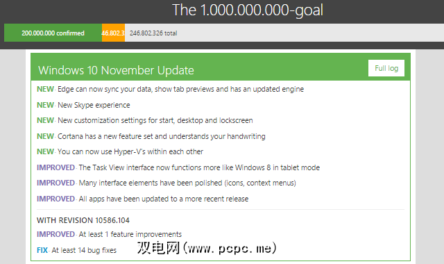 用于跟踪Windows 10版本的第三方资源是ChangeWindows。在视觉上令人愉悦的界面中滚动,以概览不同的Windows 10桌面和移动版本。单击完整日志以获取发布日期,以及特定更改,已修复和已知问题的详细列表。