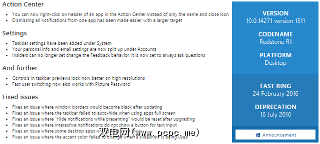 目前,该网站专注于构建,因此未关注提供指向各个Windows Update KB文章的链接。但是,在当前版本的详细信息下面,您会找到指向相应版本的Microsoft官方公告的链接。
