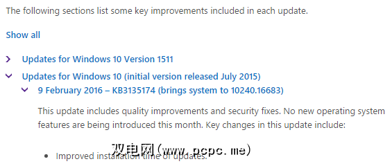 我们发现此概述比Windows 10有用得多更新历史记录页面。有关Windows 10更新内容的详细信息,请参阅相应的知识库文章。