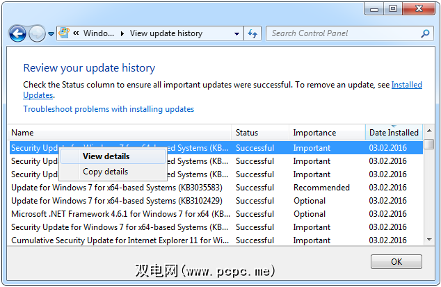 右键单击更新,然后选择查看详细信息以访问相应更新的摘要。有关更多信息,请单击底部链接到的知识库文章。