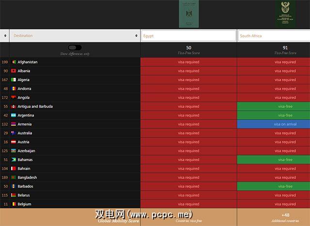有了护照索引,该搜索就获得了很多更轻松。而且,如果您是一个团体旅行,一次可以轻松地对多达四个国籍进行快速比较。
