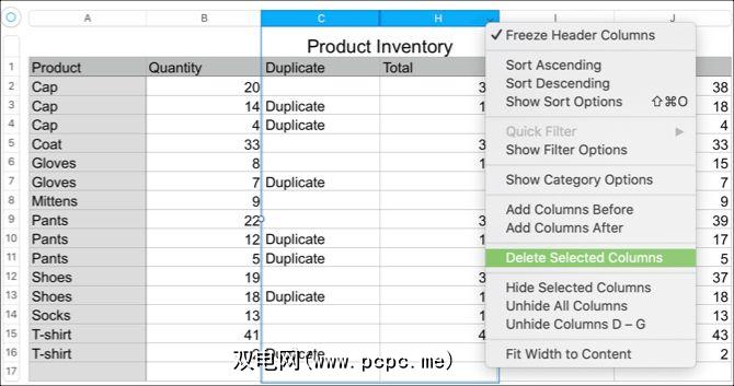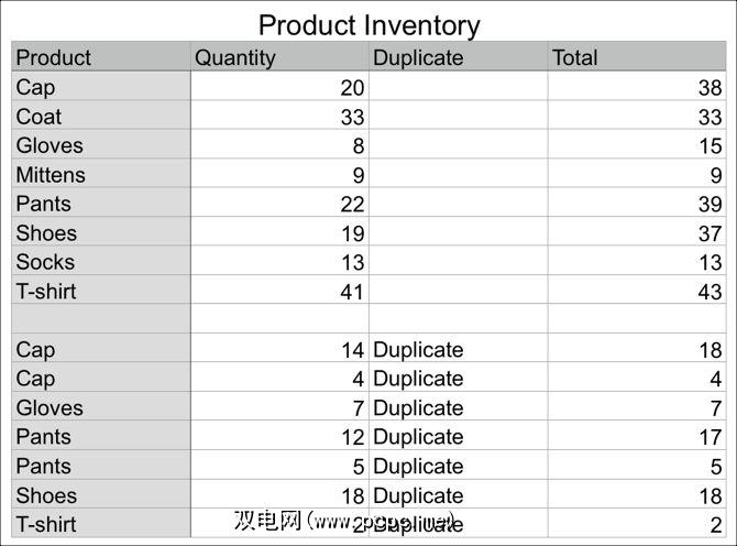 也许您确实想删除重复项,但也不想丢失任何数据。例如,您可能像我们的示例一样拥有产品的库存数据。因此,您要在删除重复项之前总计这些金额。为此,您需要首先合并数据,对于此任务,将在Numbers中同时使用公式和函数。