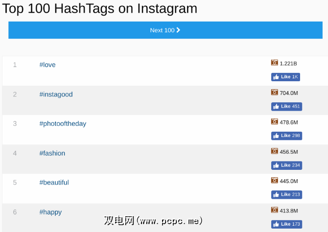 Before you figure out a strategy, you first need to understand which hashtags are the most popular on Instagram. Top Hashtags provides a list of the top 100 Instagram hashtags ever used. You can see how many millions of photos are tagged similarly. Even remembering a selection of these might give you a headstart.