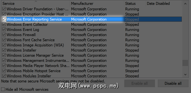 现在,转到服务选项卡,并禁用以下两个选项:问题报告和解决方案控制面板和 Windows错误报告服务。 要禁用它们,请取消选中它们旁边的框。 重新启动计算机,当它恢复运行时,屏幕不应再出现任何问题!