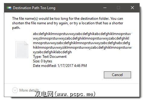 有时单个文件名已损坏。此外,长文件名是Windows的继承功能,在MS-DOS体系结构中根深蒂固。总而言之,如果文件名超过255个字符,您将会遇到麻烦。