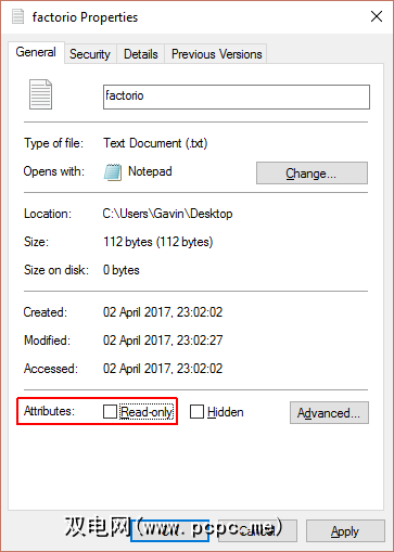 浏览到USB驱动器,然后找到有问题的文件。右键单击,然后选择属性。在面板底部的“属性"下,确保未选中只读。