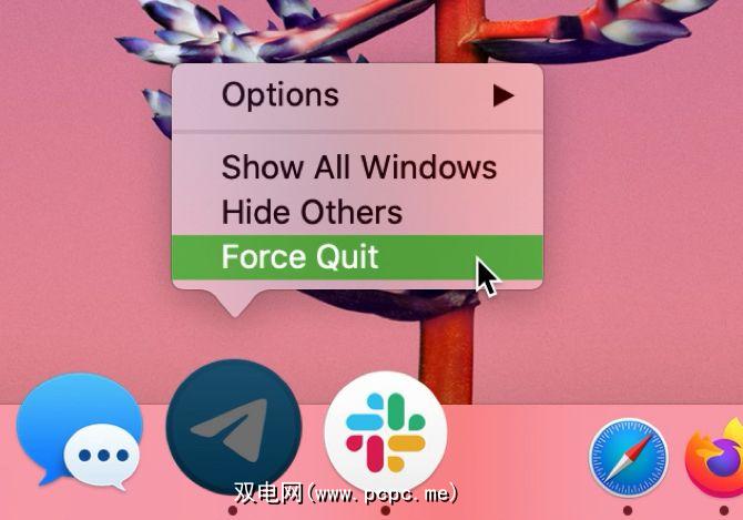 您可以通过右键单击并选择退出,轻松地从Mac Dock中退出应用程序。但是,您也可以从Dock强制退出应用程序。