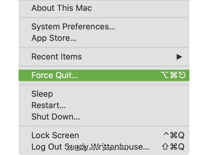 强制退出应用程序的下一个最简单方法是使用您的菜单栏。打开屏幕左上方的 Apple菜单,然后选择强制退出。