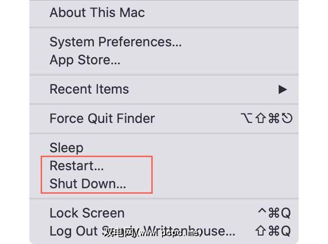 重新启动或关闭Mac的最佳方法是使用菜单栏。单击 Apple菜单>重新启动或关闭。