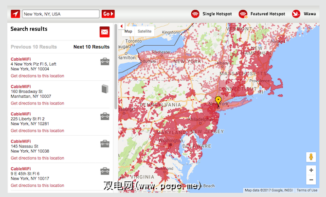 另一个检查免费上网的地方是通过您的ISP。他们中的许多人都提供免费的热点,其中许多热点都集中在主要城市附近。使用您的邮政编码来查找Xfinity,Cox,时代华纳电缆,Verizon和Optimum等热点的位置。