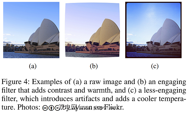 Yahoo Labs研究员Saeideh Bakshi和其他人分析了760万张Flickr照片(其中一半以上来自Instagram)并采访了15位移动应用用户以进行研究。他们发现,参与度最高的照片发生在散发着温暖并突出对比度的照片中。这意味着什么?这是来自Bakshi论文的示例: