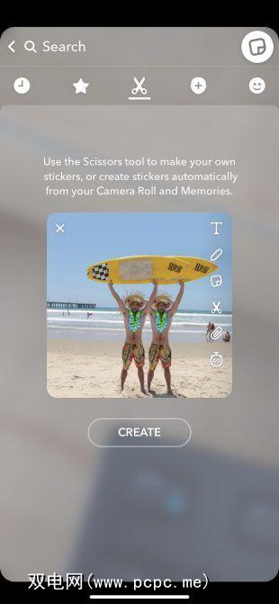 完成快照后,图标会显示在右侧屏幕上的单击一个看起来像粘滞便笺的东西。这些是贴纸,另一种定制形式。它们与过滤器非常相似,它们会在图片或视频中添加插图。