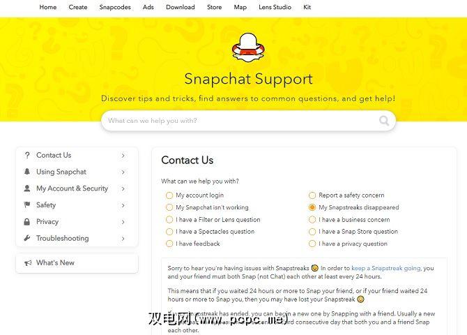 转到Snapchat支持。您会看到一系列潜在问题;点击我的快照消失。联系表格将在有关条纹的详细信息下方加载。这将需要有关您帐户的基本信息(用户名,电子邮件地址,手机号码和设备),然后是有关连胜的细节。