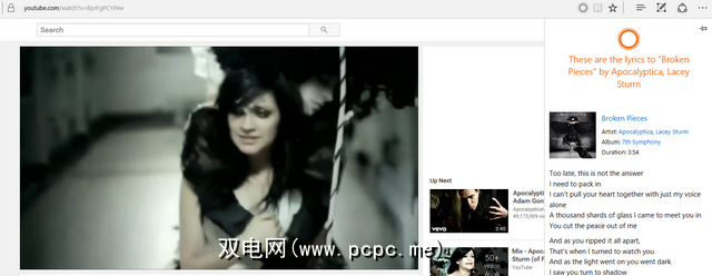 该功能非常易于使用。使用Edge浏览器播放YouTube视频时,您会在地址栏中看到一个小圆圈。单击此选项将使歌词的歌曲在屏幕右侧弹出。
