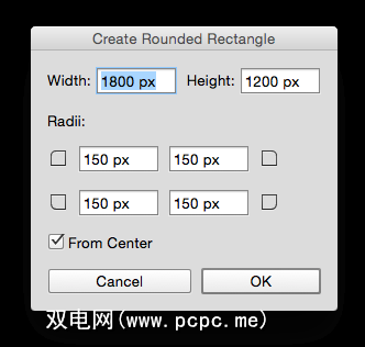 与其绘制矩形,不如单击矩形,只需在画布上单击任意位置即可打开一个对话框,您可以在其中输入圆角矩形的尺寸,并确定照片的角将变圆。