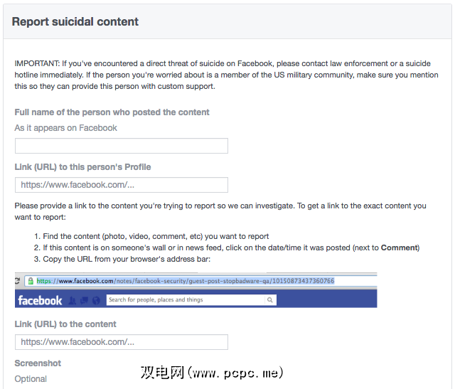如果您认为这很紧急,请立即向Facebook报告自杀或自残内容。该表单(在移动设备和台式机上均可使用)要求提供相关的详细信息,使您可以链接到帖子,共享屏幕截图或复制粘贴文本。 Facebook表示,其全球监控团队会优先处理此类严重报告。