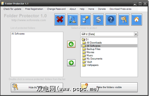 Sofonesia Folder Protector轻巧的软件(477KB)需要.Net Framework才能运行。除此之外,隐藏文件夹也很麻烦。只需将多个文件添加到受保护文件夹的列表中,然后单击即可。该软件也不加密内容,只隐藏文件夹。 Folder Protector也可以在安全模式下工作。密码保护在“〜忘记密码"提示问题中也具有故障保护功能。