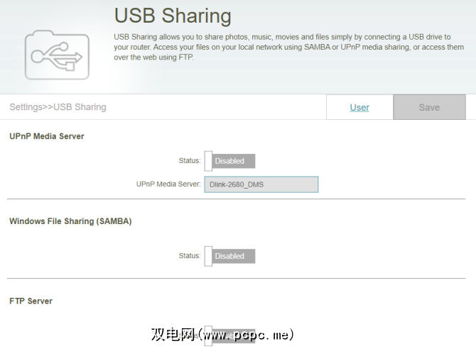 在D-Link路由器管理页面中,转到设置> USB共享,然后将每个选项切换为已禁用。