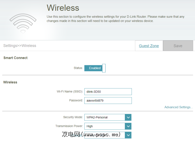 转到设置>无线>来宾区域。在此处,您可以控制来宾Wi-Fi SSID,密码,并根据您的D-Link路由器型号创建来宾时间表。
