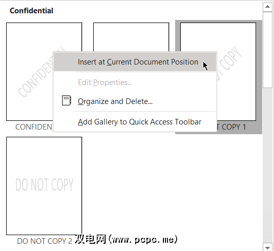4。从Word提供的选项中选择任何默认水印,但请确保适用于文档。