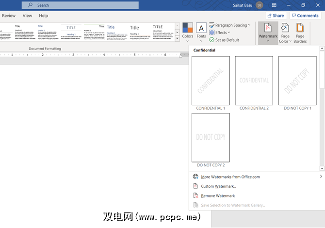Word提供了四个默认水印,例如“机密",“紧急" ",“尽快"和“请勿复制"的文本形式。如果您只用它们,那么几乎只需单击一下即可将它们插入文档。