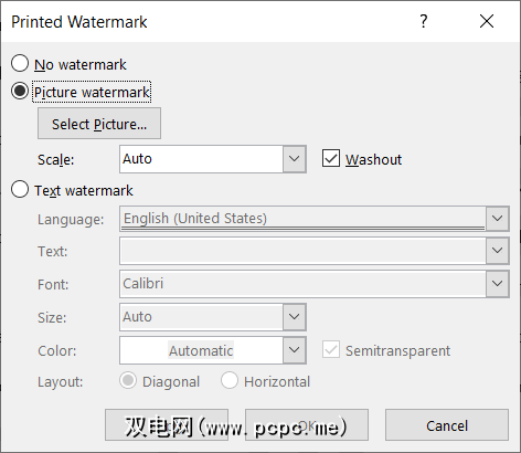 然后,可以在选择水印后以四种方式对其进行自定义: