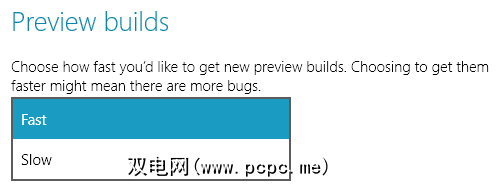 要切换到快速环,请导航至预览版可在“ PC设置"应用程序中构建(如上所述并在下面进行说明),然后从下拉菜单中选择首选的升级速度。