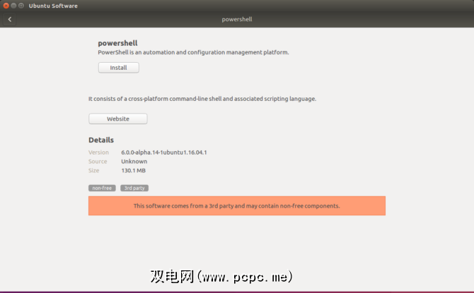 或者,您可以在Linux 上安装Windows PowerShell 使用命令行。如果您正在安装PowerShell,则可能不用担心使用命令行。如果您现在就回头。但是为了简单起见,您只能通过Ubuntu软件中心运行软件包安装程序。双击DEB以使用Ubuntu软件中心将其打开。在此处,单击安装。