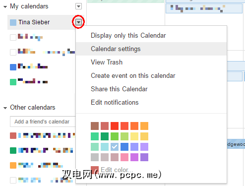 假设您只想查看一个Google日历。打开Google日历Web界面,展开我的日历,单击其中一个日历旁边的箭头,然后选择日历设置。