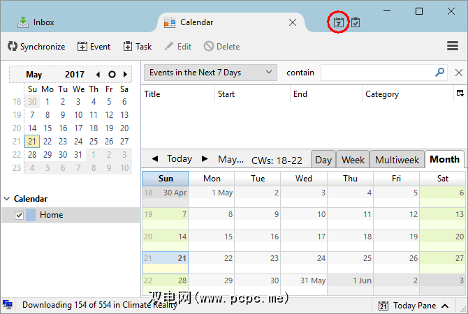 在安装了Lightning之后,您应该在任务图标旁边的右上角看到Lightning Calendar图标。单击日历图标以打开“闪电日历"选项卡。