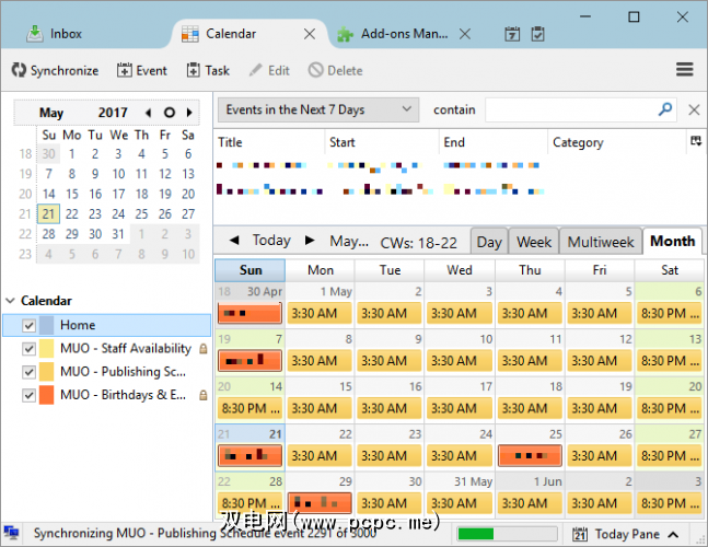 同时,Thunderbird预先安装了 Lightning日历。虽然您可以将基于网络的日历添加到Lightning,但是此日历本身并不支持对外部日历的读写访问。