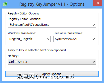 它的工作原理如下:它安静地坐在背景中。每当您看到注册表项路径时,只需使用光标将其复制并按Ctrl + Alt + X。这将启动注册表编辑器,并将其指向突出显示的键路径。