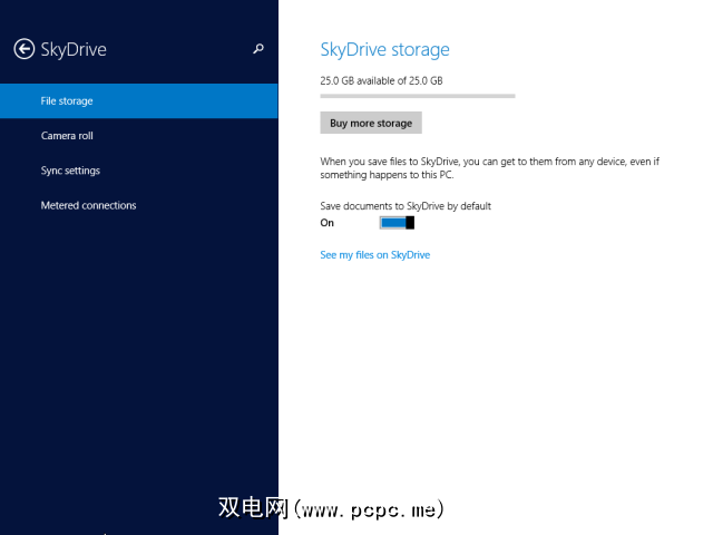 SkyDrive现在也已完全集成到Windows 8.1的另一侧。尽管Windows 8的设置同步功能与SkyDrive分开,但Windows 8.1的所有同步功能现在都由SkyDrive提供支持。您甚至可以在Windows 8.1的PC设置应用程序的“ SkyDrive"类别下找到所有旧的“同步"选项。