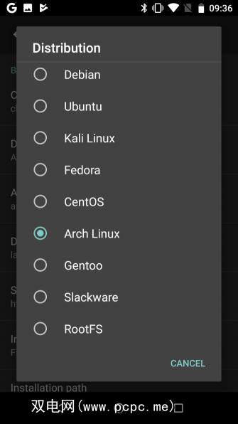 使用此选项菜单选择您喜欢的分发。 Debian,Ubuntu,Gentoo,Fedora等都可以安装。我们使用了Arch Linux。