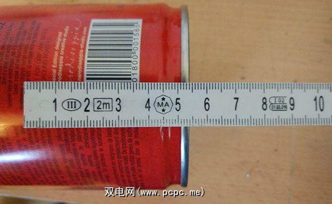 我发现,咖啡罐(直径88毫米)和大食品罐(101毫米)最接近右侧尺寸。咖啡罐的长度略短,但它缺少的2厘米与Pringles罐的26厘米长度仍相差甚远。食物可以达到几乎完美的尺寸,尽管边缘有棱纹,这会影响其性能。