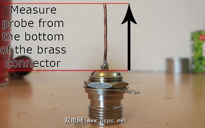 此探头的长度非常重要-您需要确保从黄铜连接器的底部到探头顶端的距离进行测量。探针将。即使在这里只有一毫米的距离,您的Cantenna也可能无法正常工作!