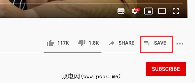 要将视频添加到自己的YouTube播放列表中,请点击保存按钮在您正在播放的视频下方。这是很多人都熟悉的按钮,因为这是将第三方内容添加到正在创建的YouTube播放列表中的第一步。
