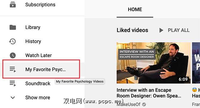 。要查找YouTube播放列表的完整列表(公开或私有),您需要向左看(如果您使用台式机或笔记本电脑)。在屏幕左侧的稍后观看按钮下,您会看到一个列表,其中包括您刚创建的播放列表。