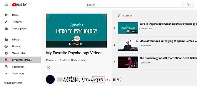 在您的YouTube私人播放列表中单击名称我们的案例“我最喜欢的心理学视频",将带到该播放列表的屏幕上。