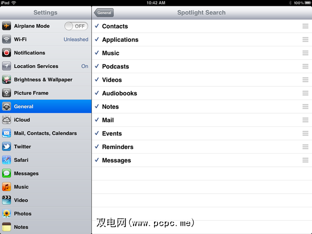 要执行此操作,请转到“设置">“常规">“ Spotlight搜索" ,然后取消选中所有清单上的项目。如果您实际上将Spotlight搜索用于某些事情,例如查找埋藏的应用程序,则可以仅为这些项目保留索引,然后取消选中所有其余项。这仍将节省一些资源,并使您的iPad受益。