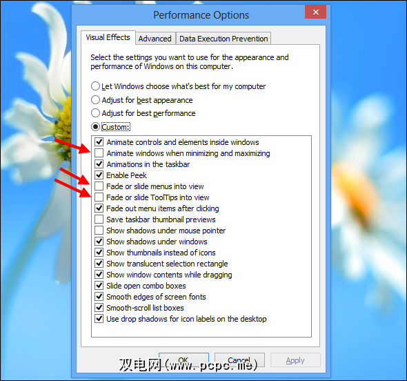 要禁用动画,请按Windows键,键入 SystemPerformanceProperties ,然后按Enter。取消选中最小化和最大化时的动画窗口选项。您可能还需要禁用其他一些动画,例如 Fade或将菜单滑动到视图中和 Fade或将工具提示滑入视图。