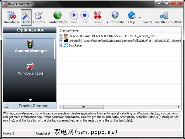 Revo Uninstaller可能会引起注意的一件事是,启动列表的数量少于MSConfig甚至其他程序。我的理论是,它们消除了一些意外错误的可能性,例如系统驱动程序和其他重要元素,它们被意外禁用。