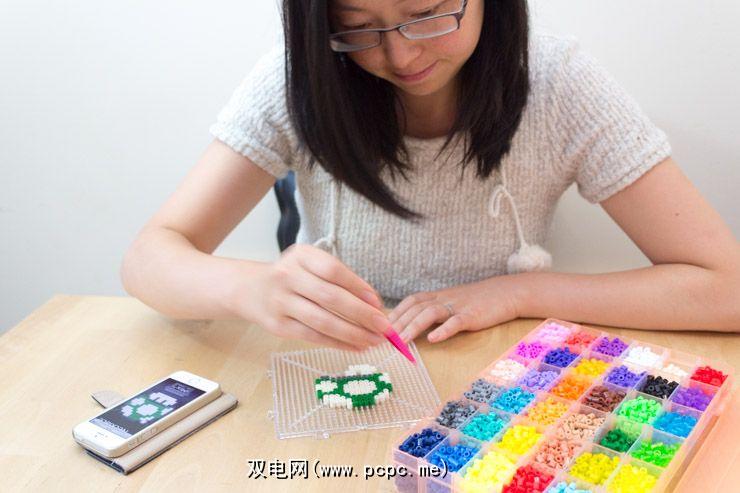 使用镊子将设计复制到钉板上。由于大多数设计都有轮廓,因此您可能很快就会发现黑色或白色珠子用完了–可以便宜地购买其他颜色的单独包装。