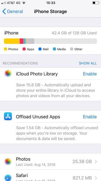例如,在上图中,您可以看到照片占了我设备上已用空间的大部分。唯一其他重要类别是应用程序。