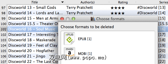 如果您不再需要以前的格式,请将其删除可以避免将来造成混乱。您可以通过从口径库中选择任意数量的项目,右键单击并导航到删除书本->从选定的书本中删除特定格式的文件来删除特定格式。