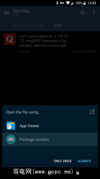 点击一个APK文件,您会看到相同的提示来进行安装。如果您使用的是Android Oreo或更高版本,请确保已授予云存储应用程序安装应用程序的权限。
