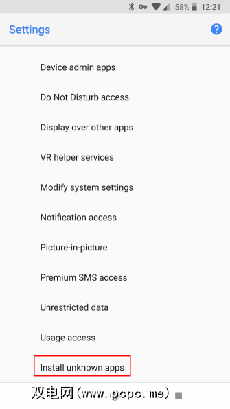 要进行切换,请打开设置>应用程序和通知。展开底部的高级部分,然后点击特殊应用访问权限。在出现的菜单上,向下滚动并选择安装未知应用。