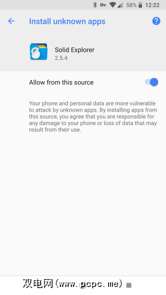 在较新版本的Android上,Google更改了侧载以提高安全性。现在,您必须按应用(而不是全局)切换未知来源选项。这样一来,您就可以从经常使用的某些应用程序进行安装,而又可以阻止其他应用程序。