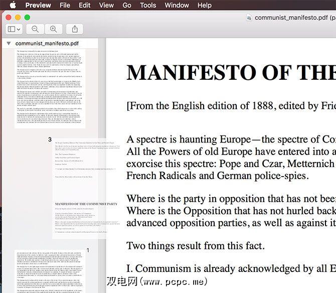 分割PDF的绝佳选择,但这有点麻烦。要隔离特定页面,只需打开文档,使用视图>缩略图启用缩略图视图,然后使用 command +单击选择要拆分为新文档的页面。