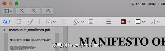 Apple的“预览"应用程序还具有用于标记的便捷工具箱。文件,甚至在您的名字上签名。并非所有这些工具都非常适合与PDF文档一起使用,也不是所有工具都能按预期工作。要访问这些工具,请单击“预览"主工具栏上的工具箱图标,或使用 shift + command + a 键盘快捷键。